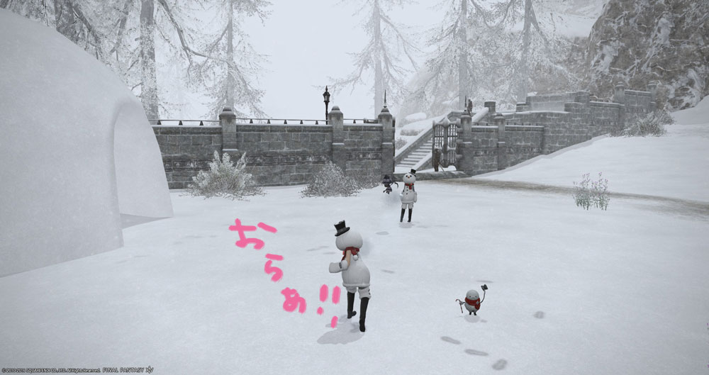ゆきだるまと談笑して